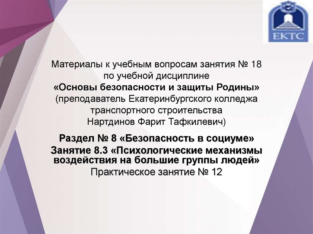 1. Материалы к учебным вопросам занятия № 18 по учебной дисциплине «Основы безопасности и защиты Родины» (преподаватель