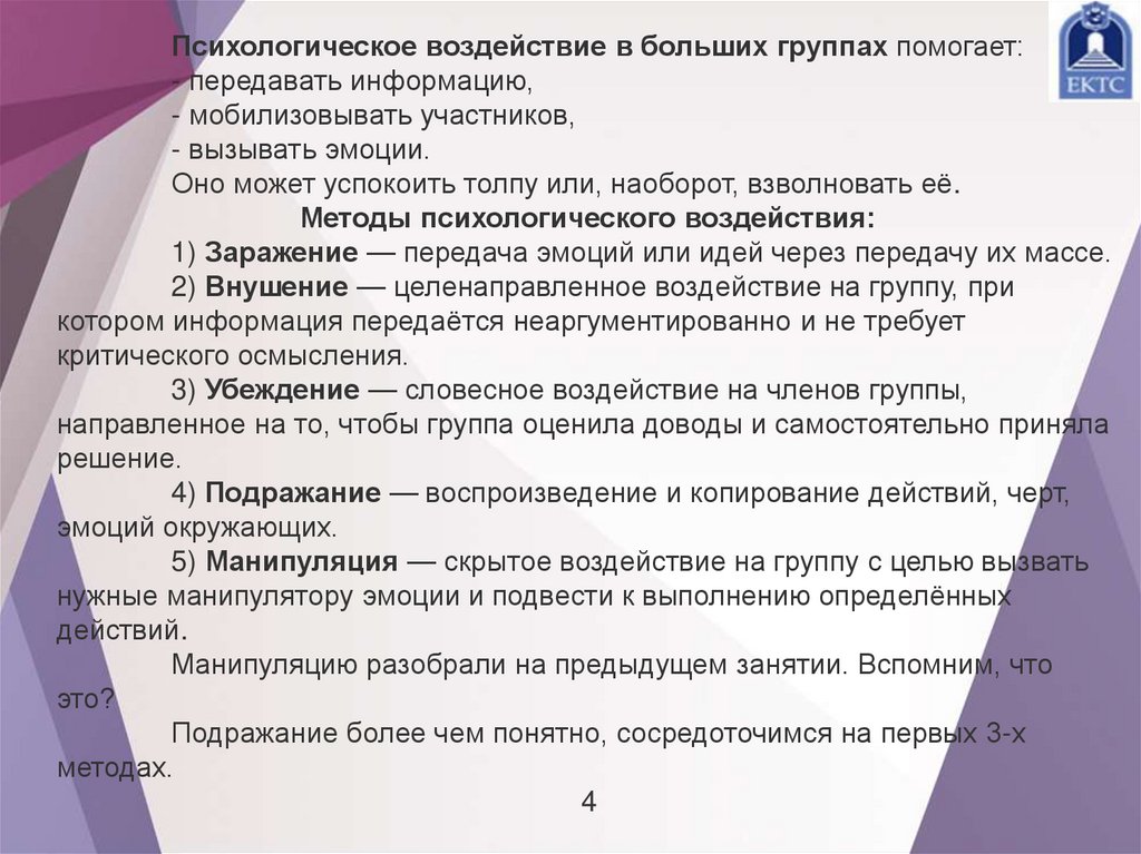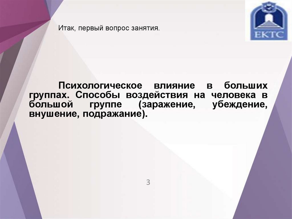 Итак, первый вопрос занятия.Психологическое влияние в больших