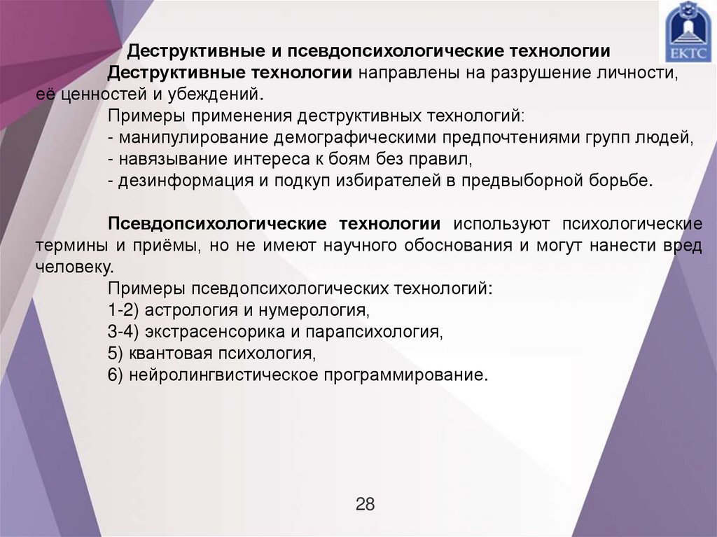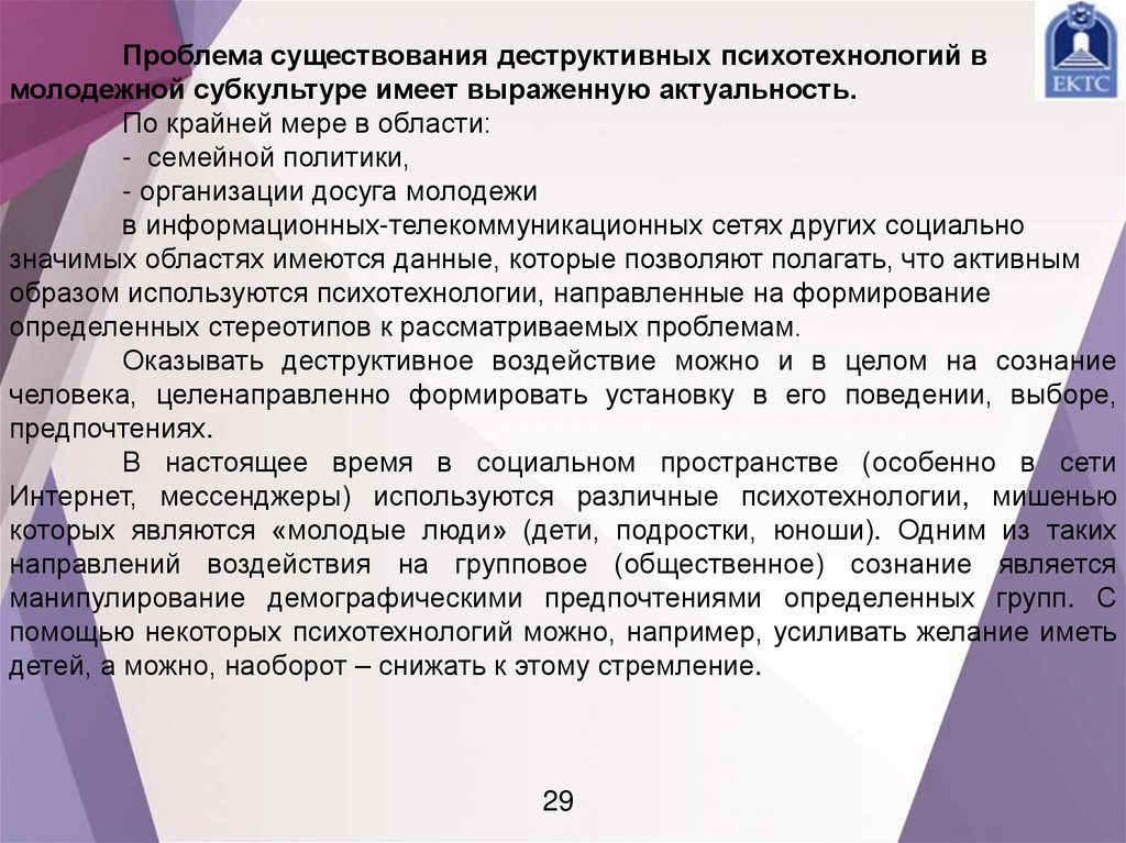 Интернет, мессенджеры) используются различные психотехнологии, мишенью