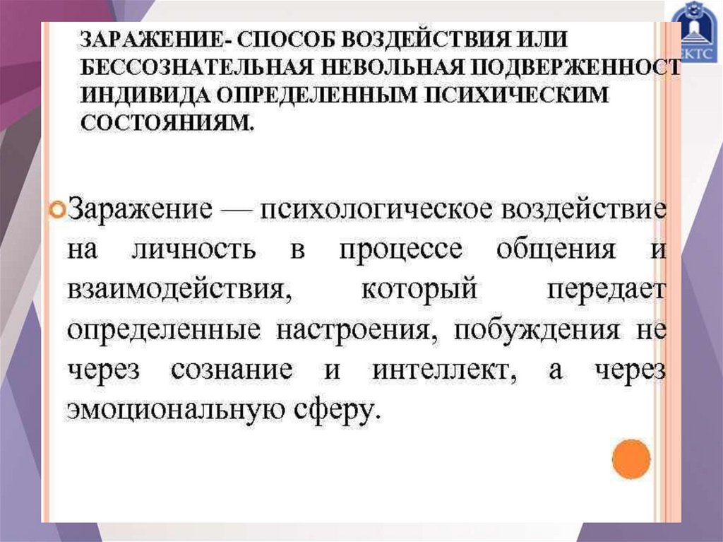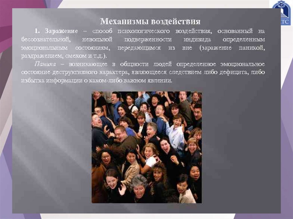 1) Заражение — передача эмоций или идей через передачу их массе.
