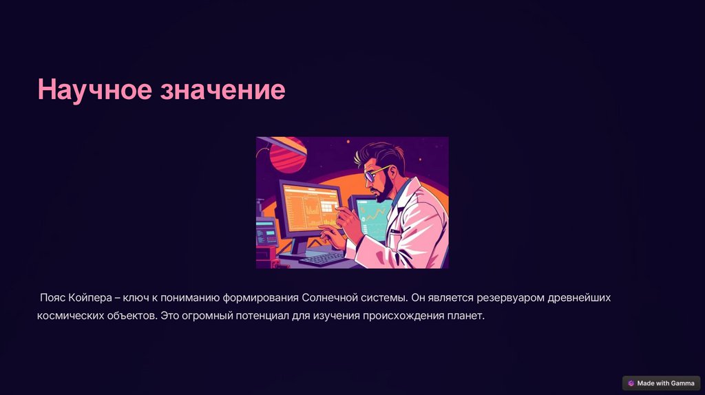 Научное значениеПояс Койпера – ключ к пониманию формирования Солнечной системы. Он является резервуаром древнейших