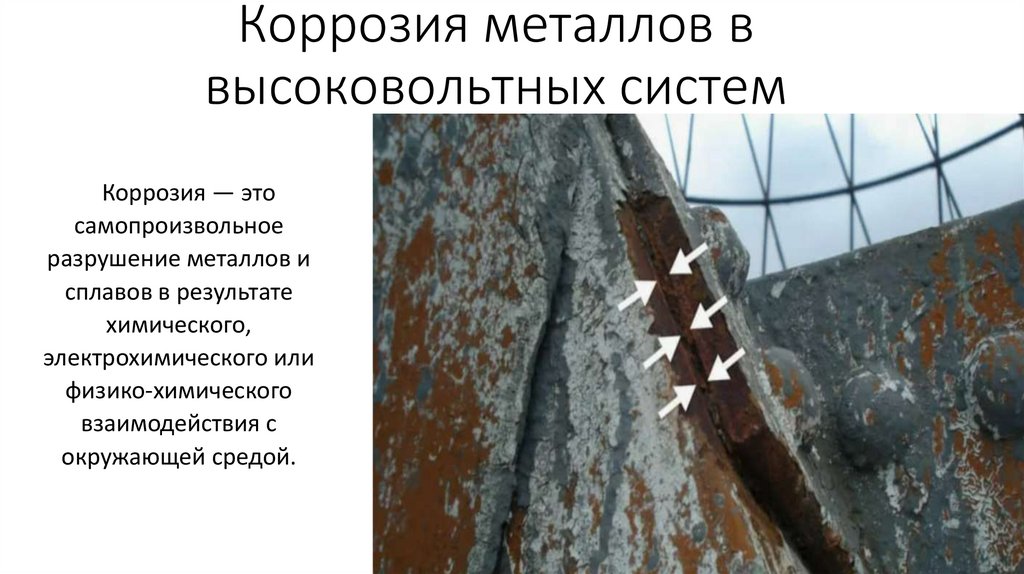 • Если брать опоры ЛЭП, то коррозия металлических конструкций- металлических опор; металлических траверси т.д.- наносят прямой ущерб, связанный с потерей металла, и вызывает снижение несущей способности опор и
