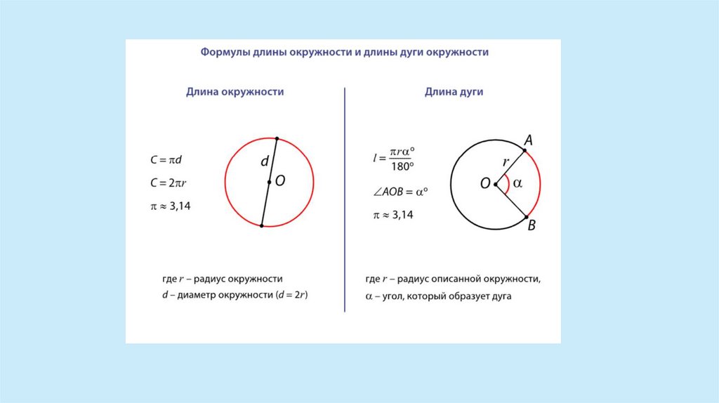 • Применяет формулу нахождения длины дуги;