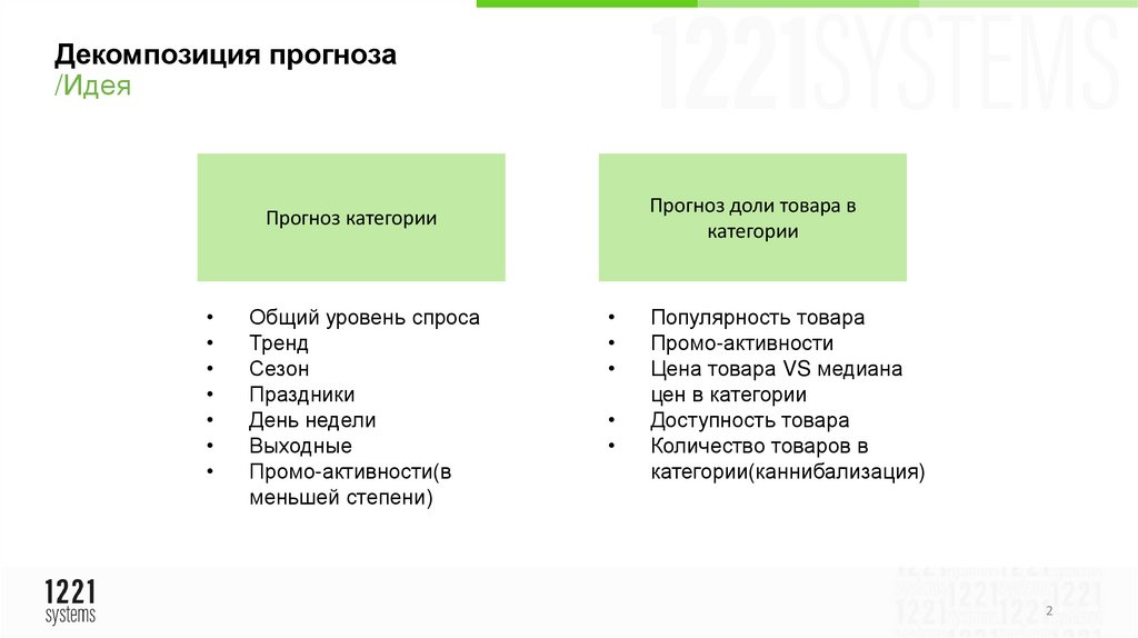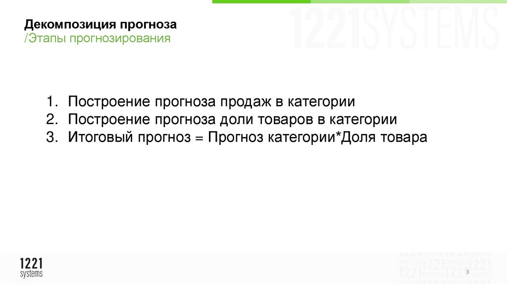 3. Итоговый прогноз = Прогноз категории*Доля товара