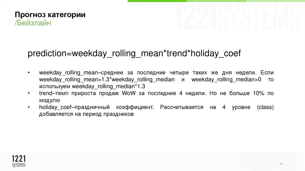 trend–темп прироста продаж WoW за последние 4 недели. Но не больше 10% по