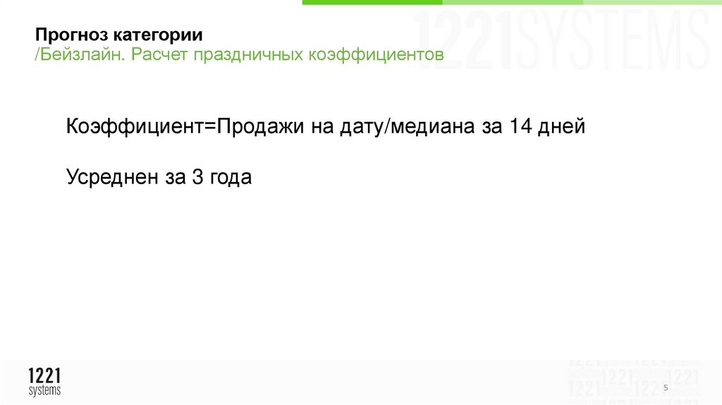 Прогноз категории/Бейзлайн. Расчет праздничных коэффициентов