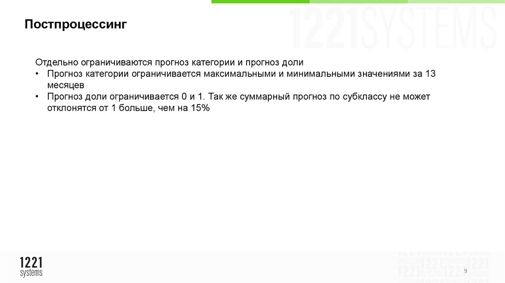 ПостпроцессингОтдельно ограничиваются прогноз категории и прогноз доли