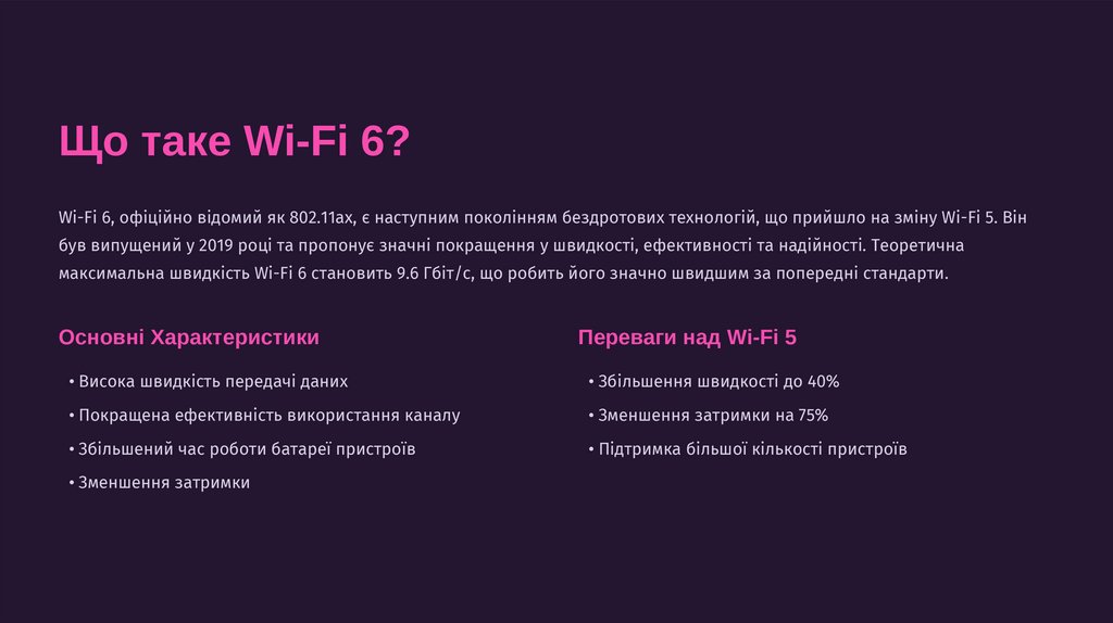Ця презентація досліджує Wi-Fi 6, останню версію протоколу