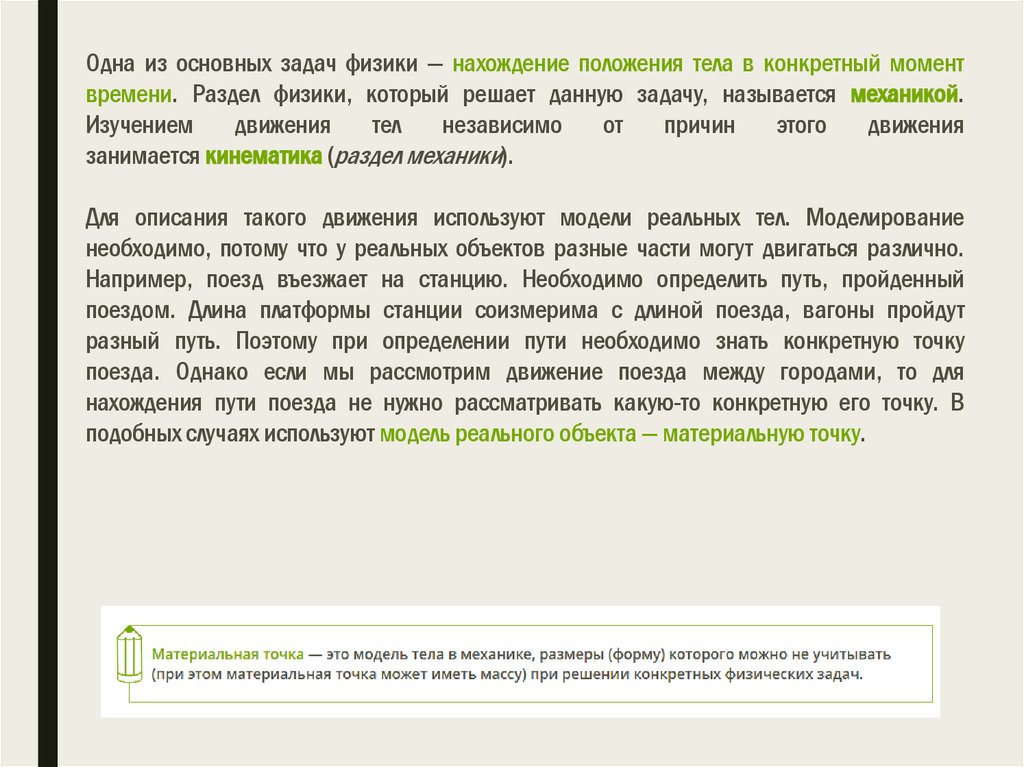 Одна из основных задач физики — нахождение положения тела в конкретный моментвремени. Раздел физики, который решает данную задачу, называется механикой.