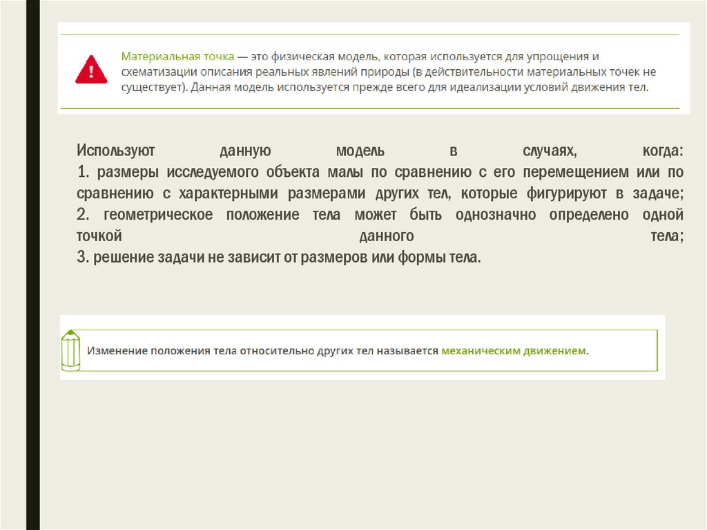 1. размеры исследуемого объекта малы по сравнению с его перемещением или по