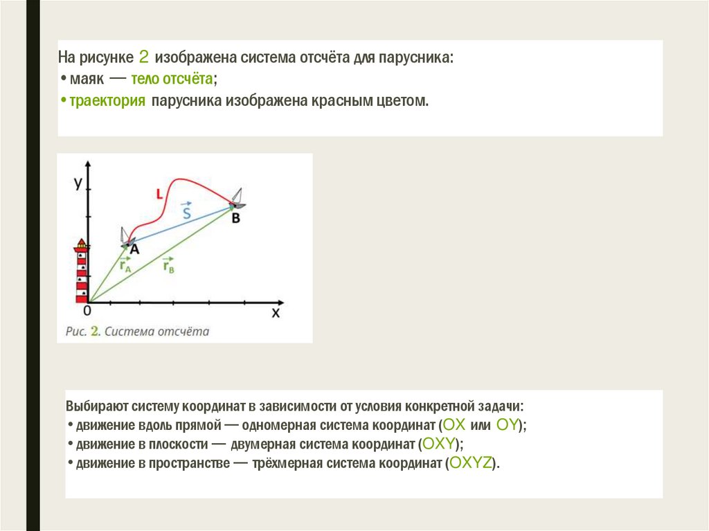 На рисунке 2 изображена система отсчёта для парусника:•маяк — тело отсчёта;