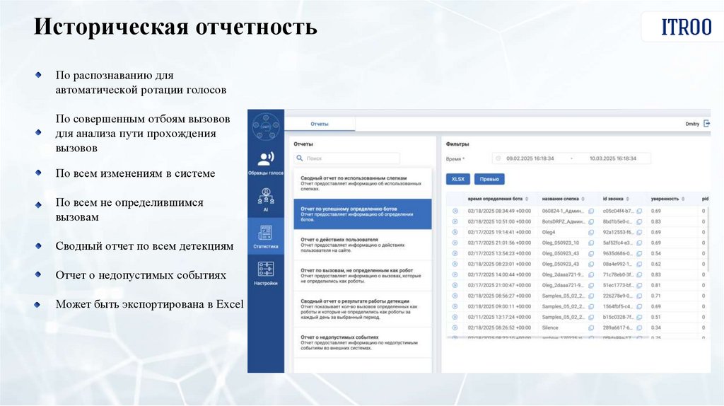 (CallID, коды завершения) или посредством запуска самообучающейся нейросети, после чего