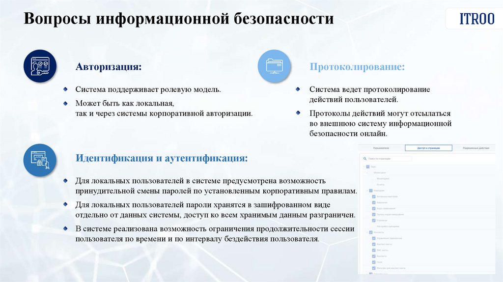 отдельно от данных системы, доступ ко всем хранимым данным разграничен.