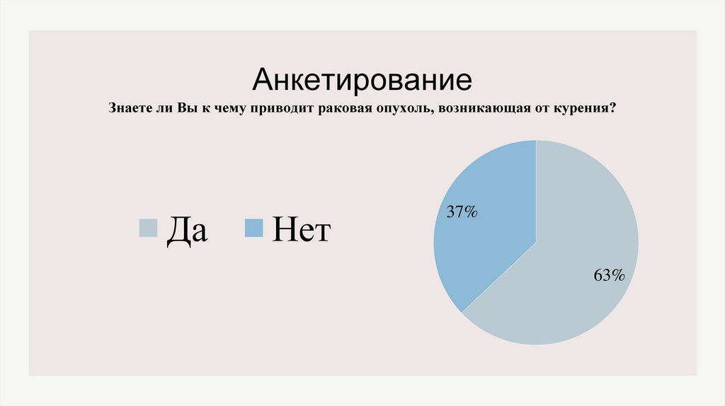 АнкетированиеЗнаете ли Вы к чему приводит раковая опухоль, возникающая от курения?