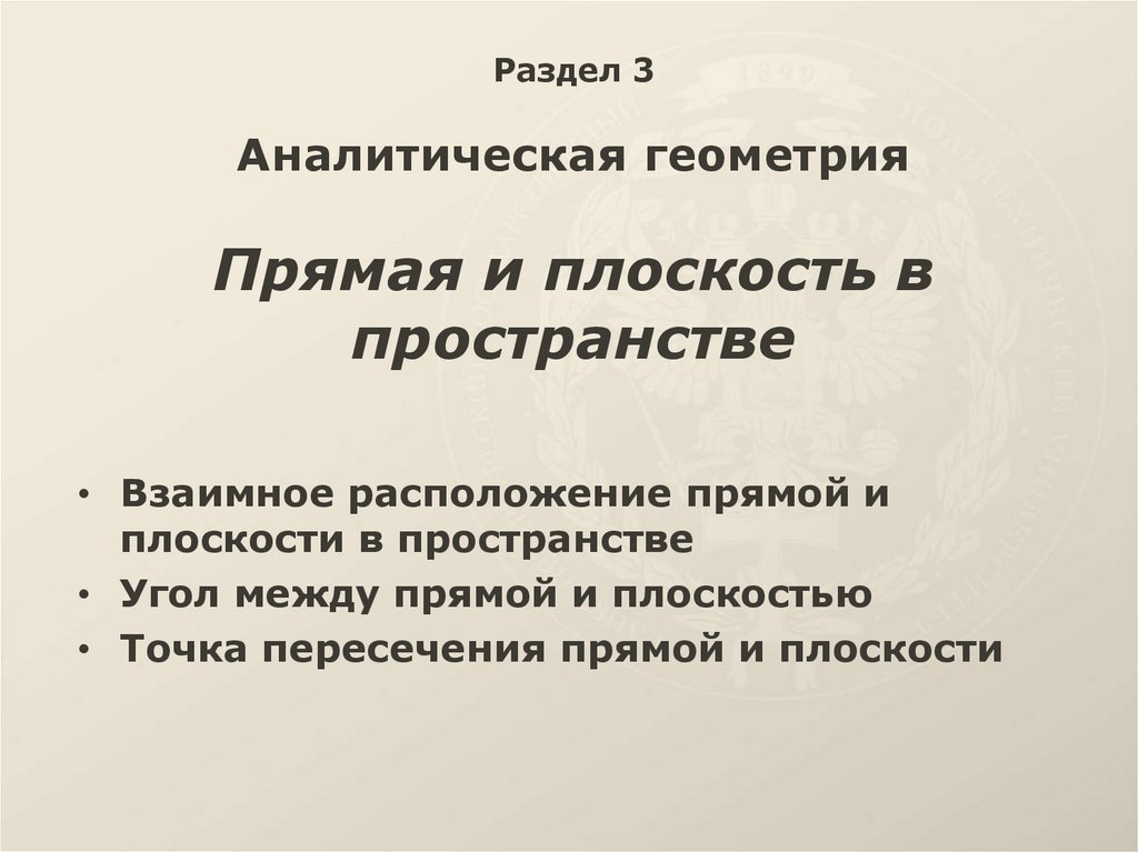 1. Раздел 3 Аналитическая геометрия Прямая и плоскость в пространстве