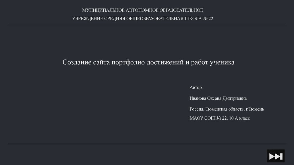 МУНИЦИПАЛЬНОЕ АВТОНОМНОЕ ОБРАЗОВАТЕЛЬНОЕУЧРЕЖДЕНИЕ СРЕДНЯЯ ОБЩЕОБРАЗОВАТЕЛЬНАЯ ШКОЛА № 22