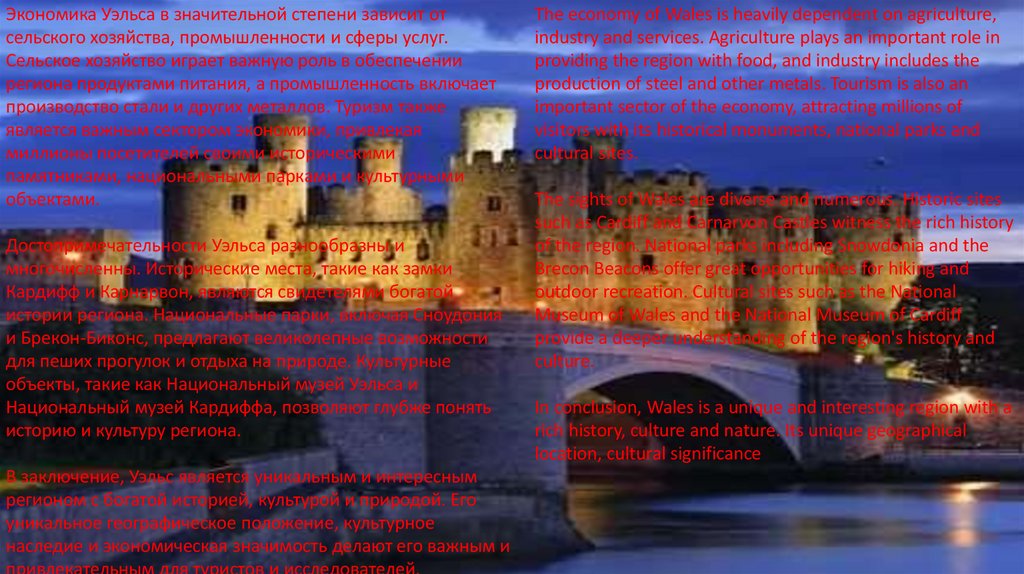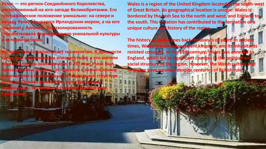 Уэльс — это регион Соединённого Королевства,расположенный на юго-западе Великобритании. Его