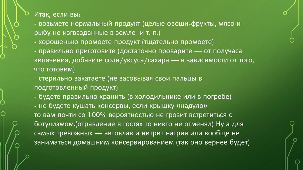 ботулизмом.(отравление в гостях то никто не отменял) Ну а для
