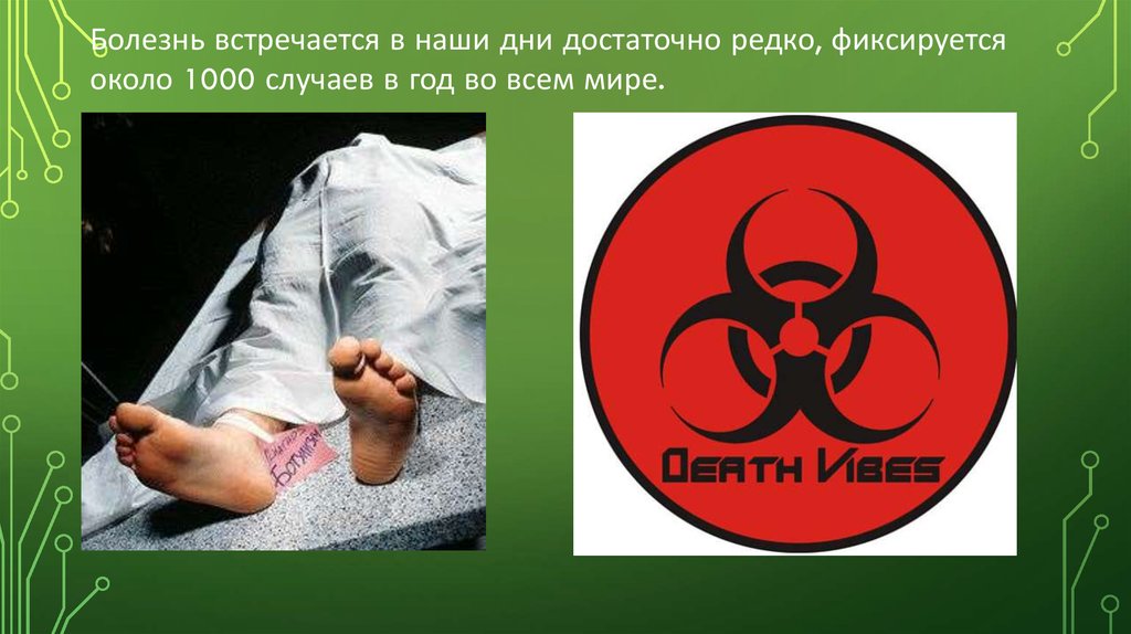 Болезнь встречается в наши дни достаточно редко, фиксируетсяоколо 1000 случаев в год во всем мире.