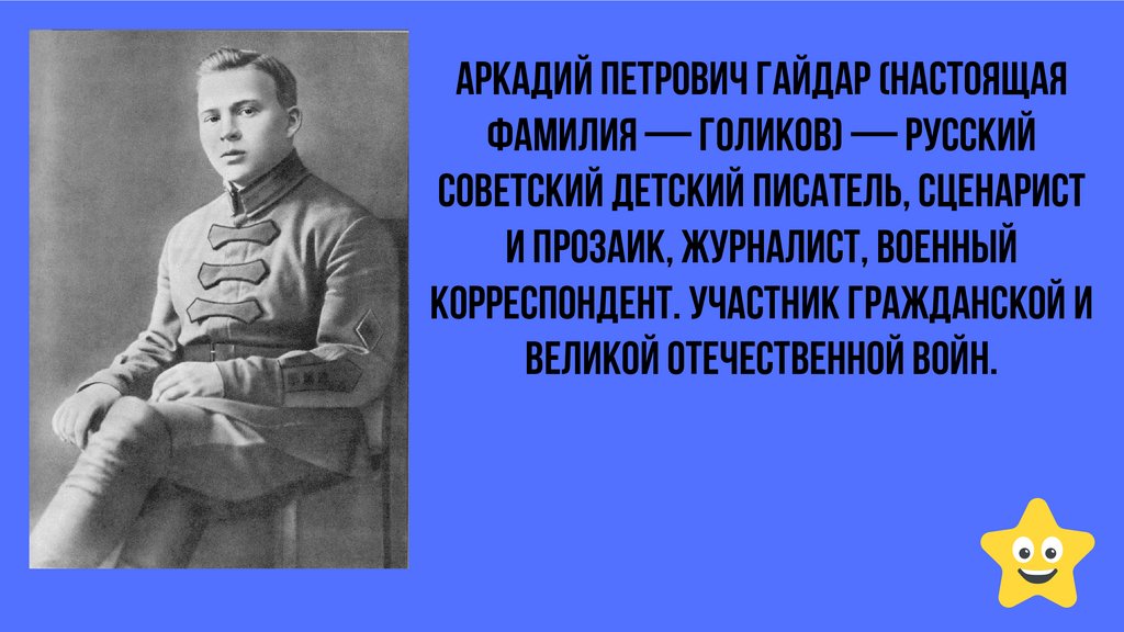 Аркадий Петрович Гайдар (настоящаяфамилия — Голиков) — русский