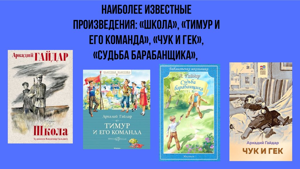 Наиболее известныепроизведения: «Школа», «Тимур и