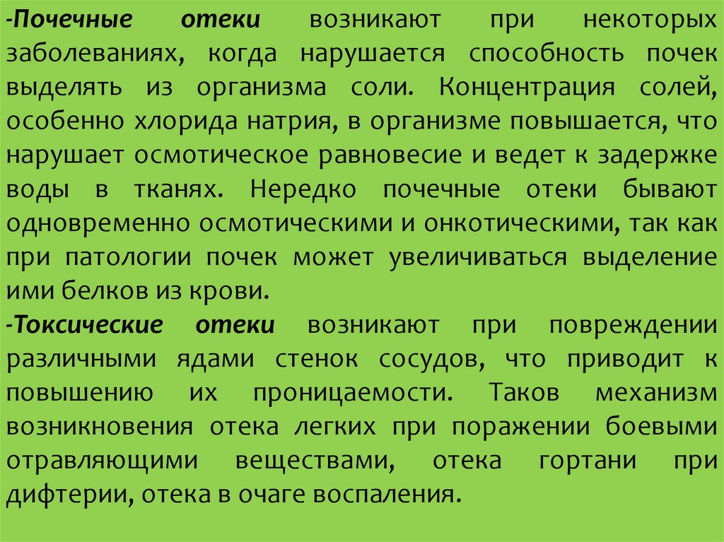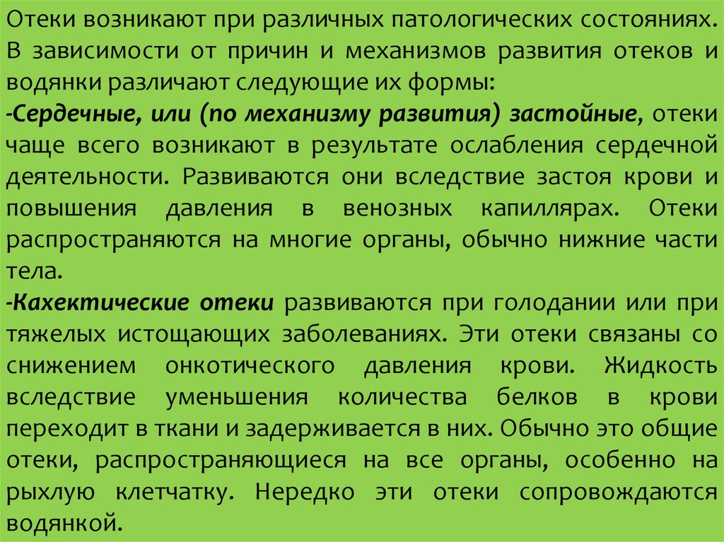 Отеки возникают при различных патологических состояниях.В зависимости от причин и механизмов развития отеков и