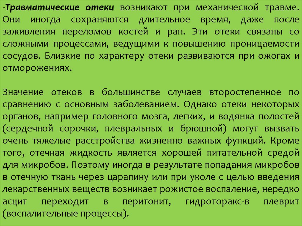 -Травматические отеки возникают при механической травме.Они иногда сохраняются длительное время, даже после