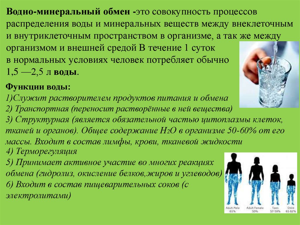 Водно-минеральный обмен -это совокупность процессовраспределения воды и минеральных веществ между внеклеточным
