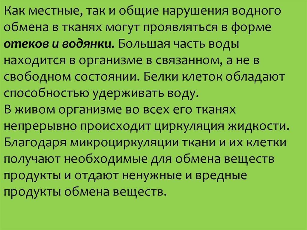 Как местные, так и общие нарушения водногообмена в тканях могут проявляться в форме