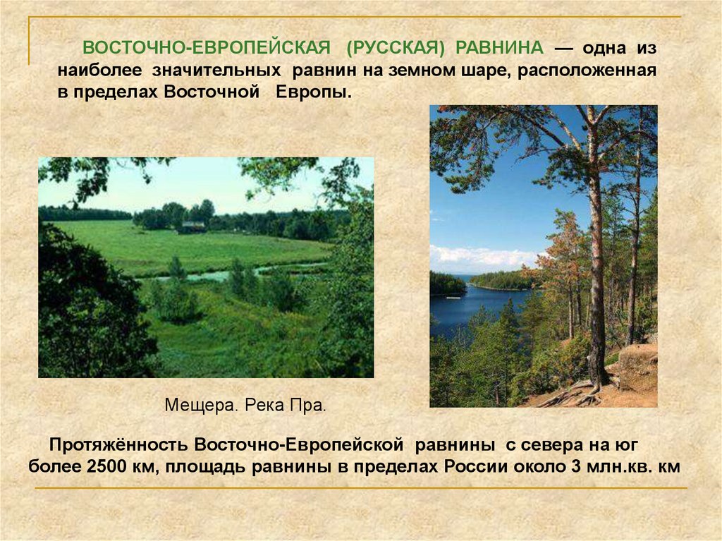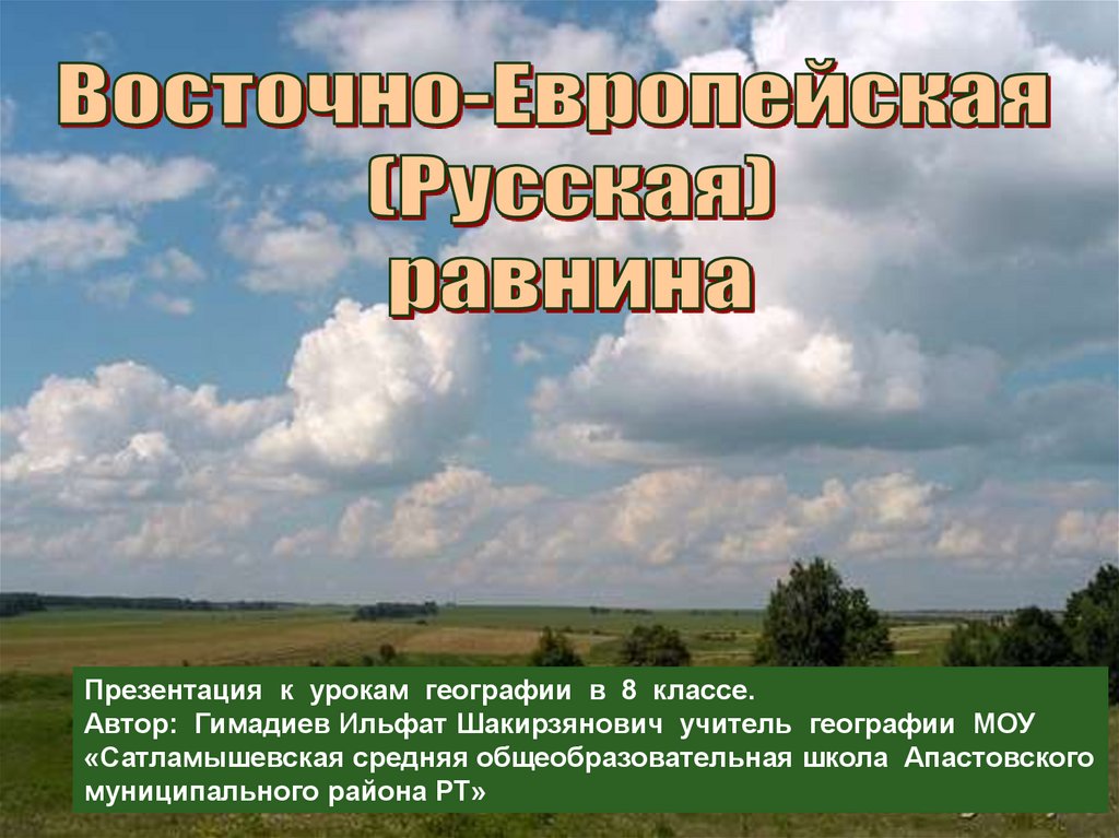 ВОСТОЧНО-ЕВРОПЕЙСКАЯ (РУССКАЯ) РАВНИНА — одна изнаиболее значительных равнин на земном шаре, расположенная