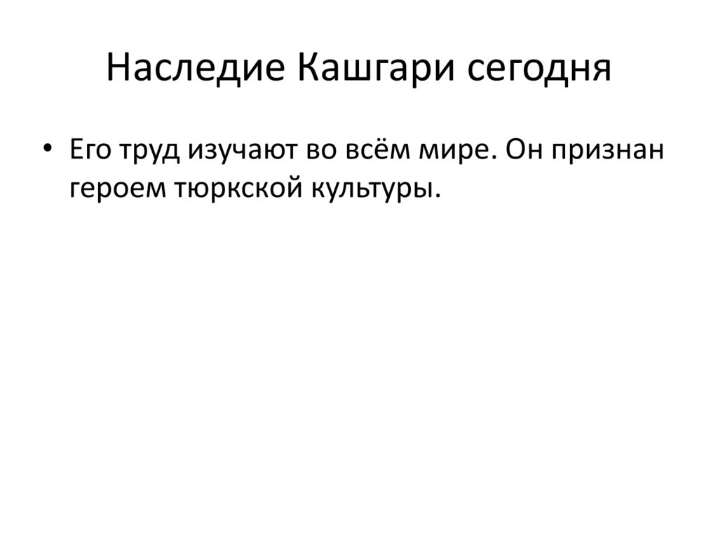 Заключение• Кашгари внёс огромный вклад в науку,