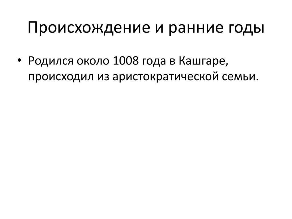 Происхождение и ранние годы• Родился около 1008 года в Кашгаре,