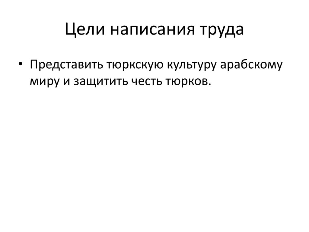Цели написания труда• Представить тюркскую культуру арабскому