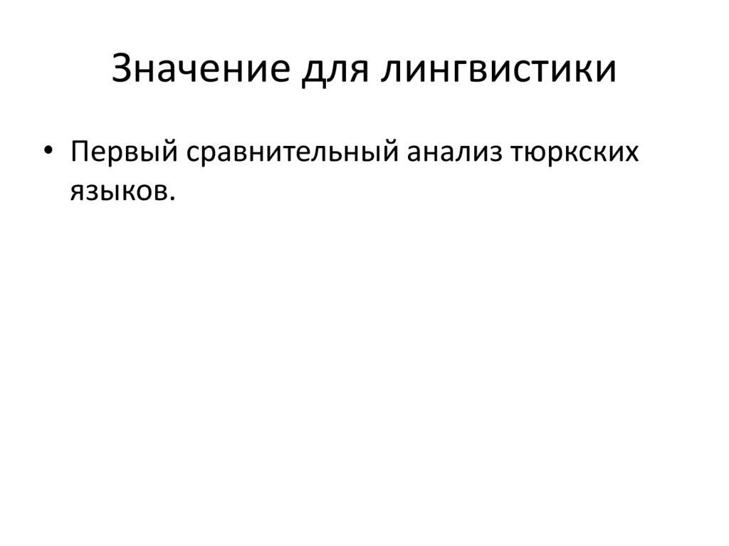 Значение для лингвистики• Первый сравнительный анализ тюркских