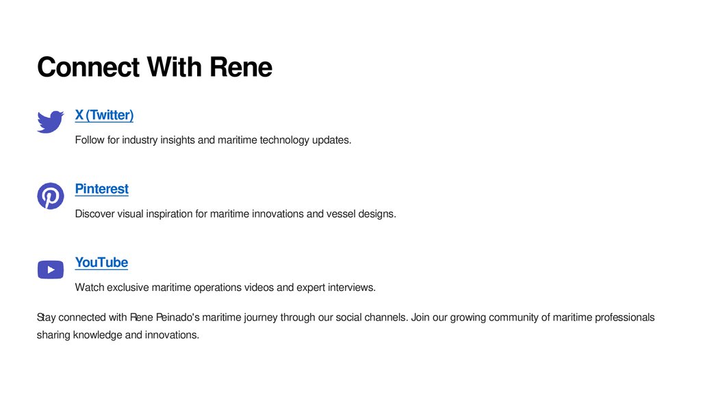 Stay connected with Rene Peinado's maritime journey through our social channels. Join our growing community of maritime professionals