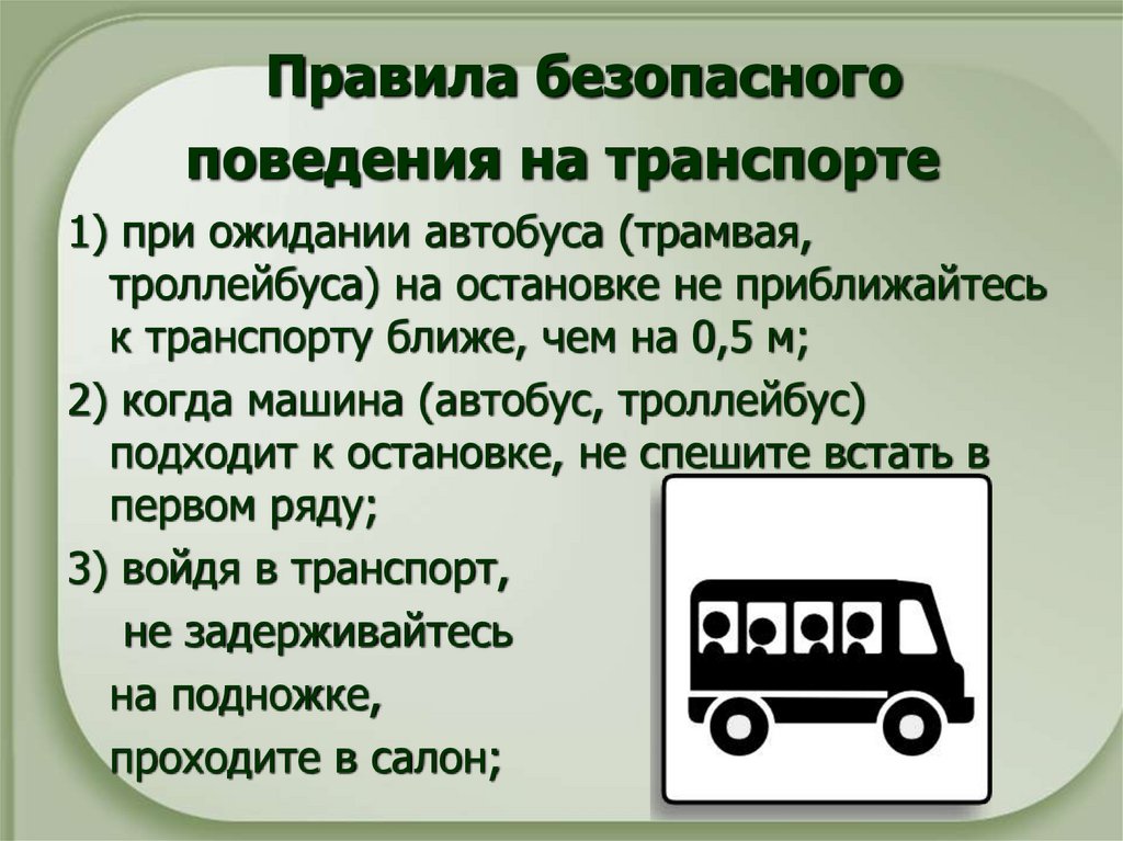 5) выйдя из транспорта на тротуар, дождитесь,когда автобус, троллейбус или трамвай отъедет,
