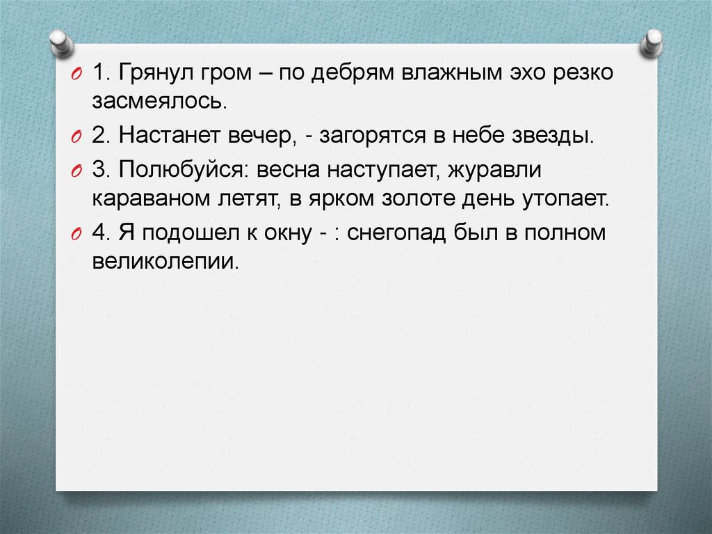 O 1. Грянул гром – по дебрям влажным эхо резкозасмеялось.