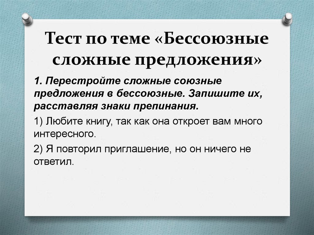 1. Перестройте сложные союзныепредложения в бессоюзные. Запишите их,