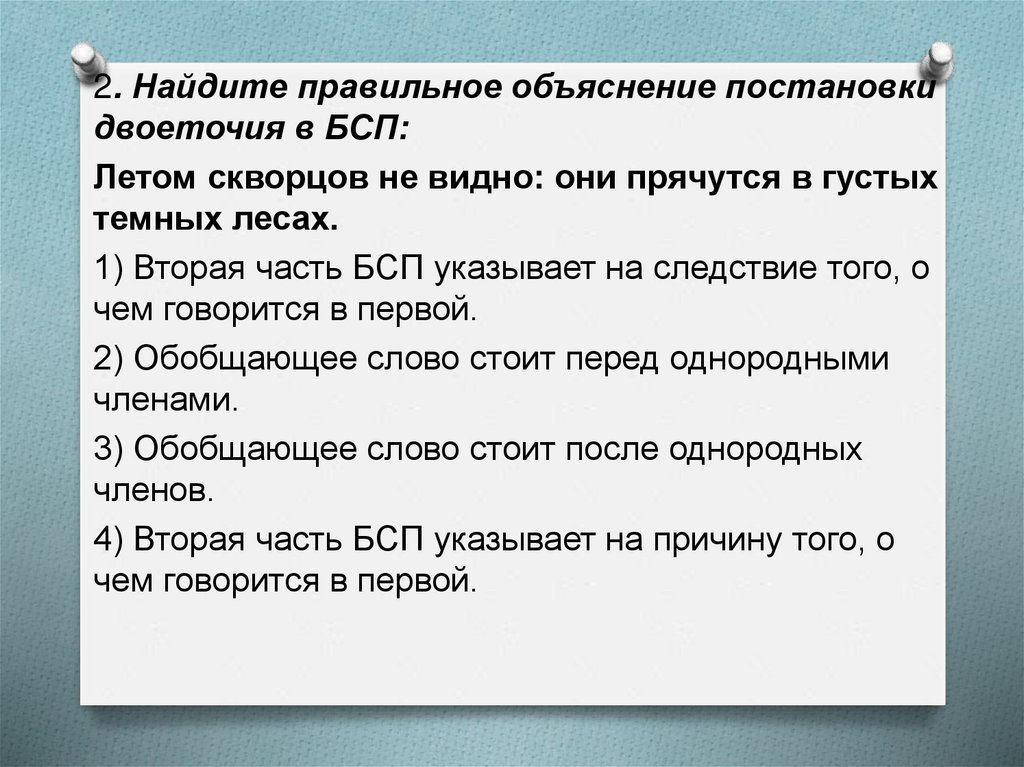 2. Найдите правильное объяснение постановкидвоеточия в БСП: