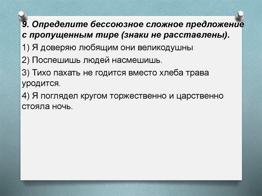 9. Определите бессоюзное сложное предложениес пропущенным тире (знаки не расставлены).
