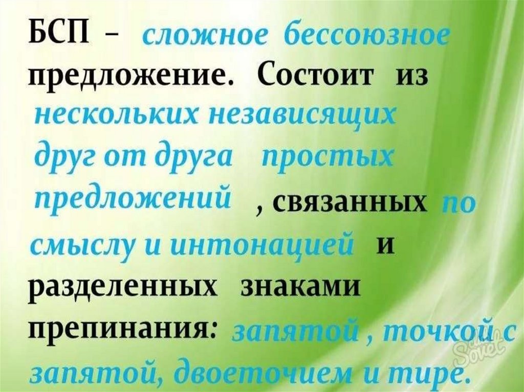 1. Бессоюзное сложное предложение. Обобщение.