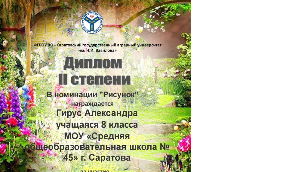 ФГБОУ ВО «Саратовский государственный аграрный университетим. Н.И. Вавилова»