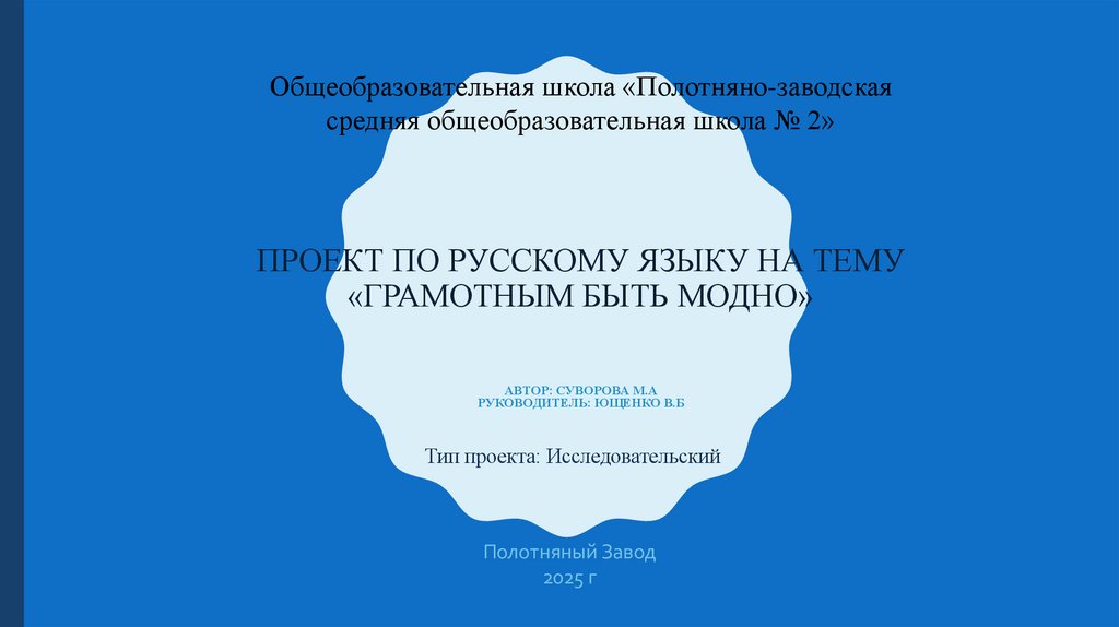1. Проект по русскому языку на тему «Грамотным быть модно»