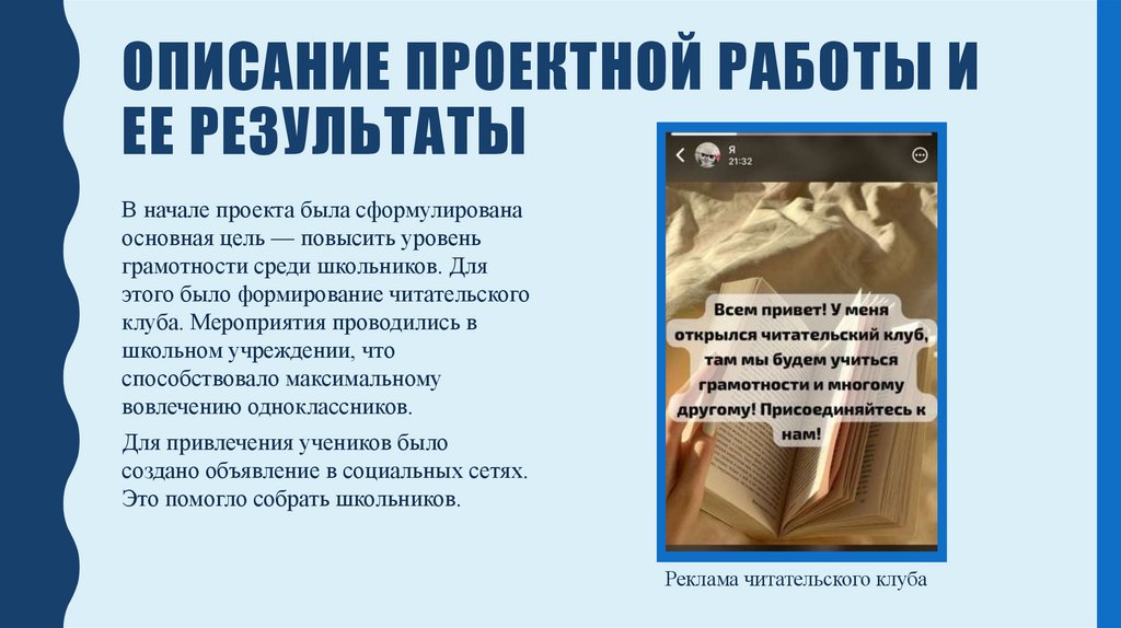 10. Описание проектной работы и ее результаты
