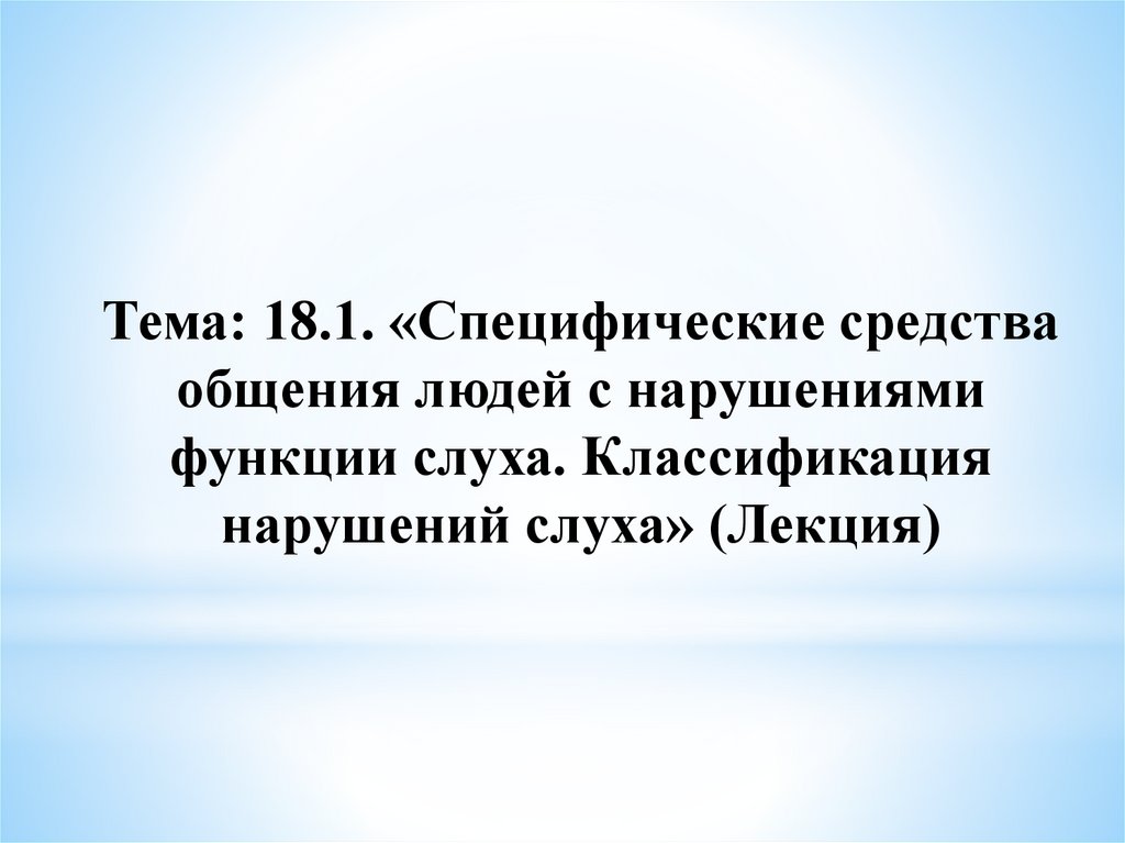 Специфические средства общения людей с нарушениями функции слуха. Классификация нарушений слуха (Лекция)