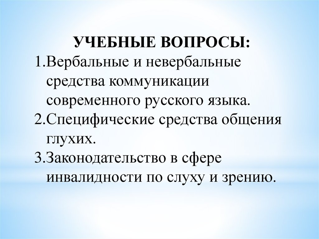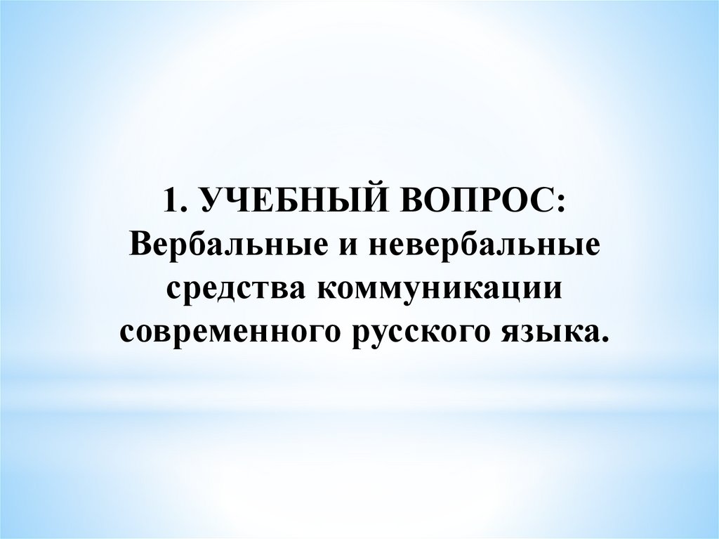 1. УЧЕБНЫЙ ВОПРОС:Вербальные и невербальные