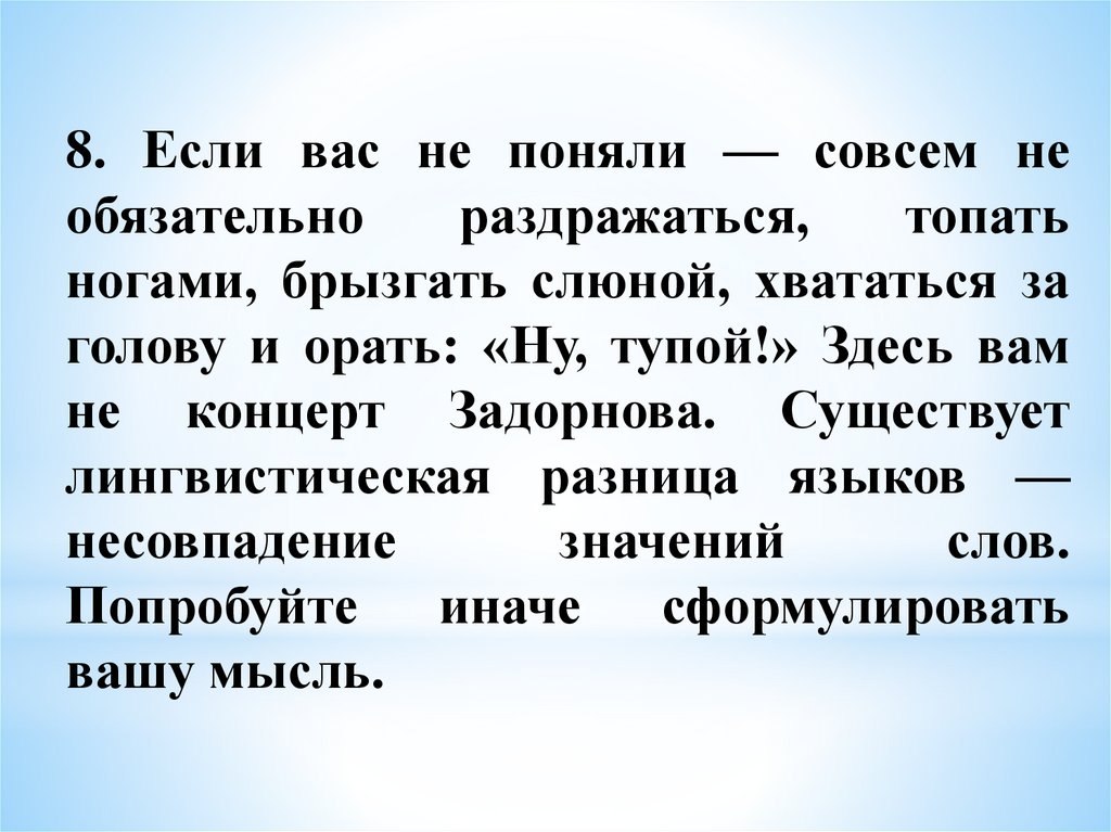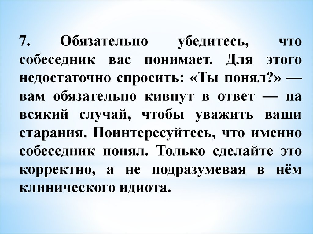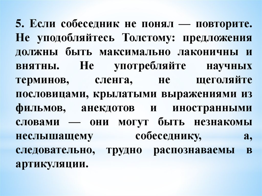 5. Если собеседник не понял — повторите.Не уподобляйтесь Толстому: предложения