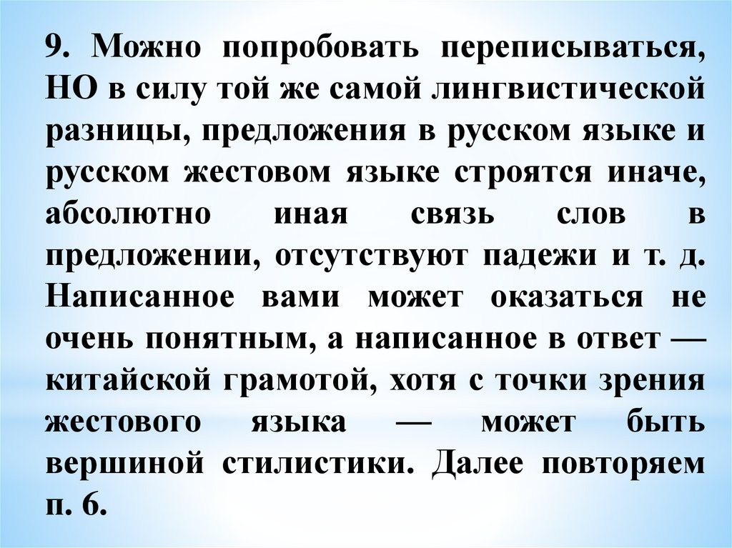 9. Можно попробовать переписываться,НО в силу той же самой лингвистической