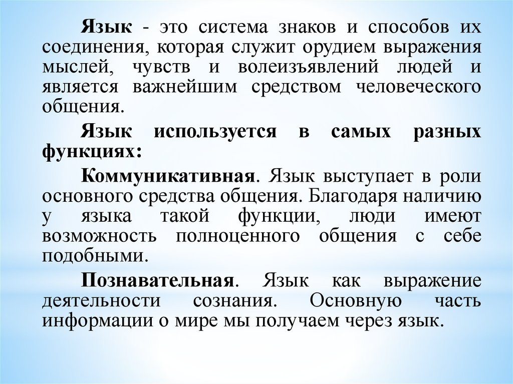 Язык - это система знаков и способов ихсоединения, которая служит орудием выражения
