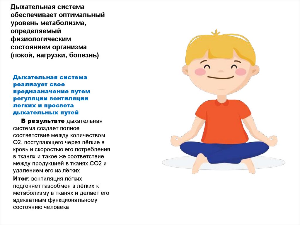 2. Дыхательная система обеспечивает оптимальный уровень метаболизма, определяемый физиологическим состоянием организма (покой,